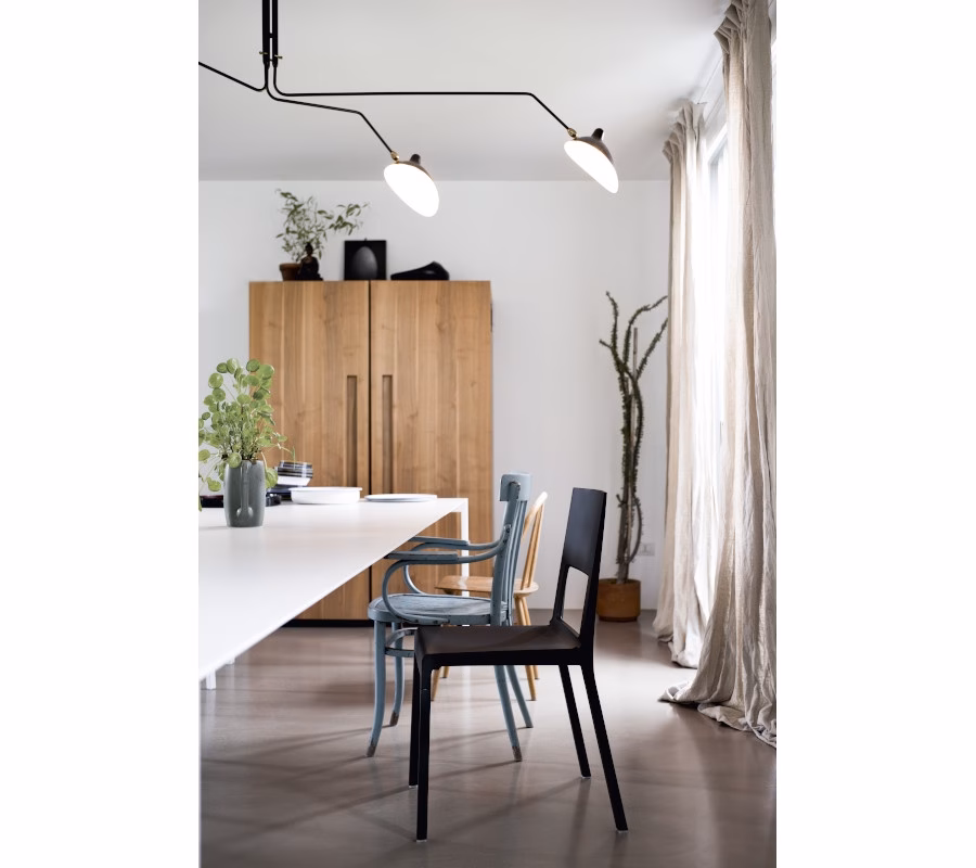 Developed in collaboration with designer Luca Nichetto, the Face chair is comfortable and sturdy. It is made of polyurethane with a reinforced structure to ensure resistance to stress and the flexibility of the backrest. The backrest itself – flexible, adaptable to the body and slightly higher than average – is the element that makes the seat comfortable. The large hole makes it easier to grip the chair, which is stackable: combined with its highly distinctive design, such features make it ideal for community environments and for the home.