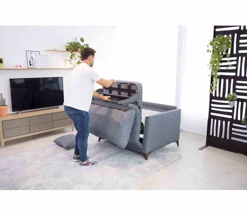 The Dalí armchair is a great novelty, as it offers us the possibility of having a single bed mechanism without having a large sofa. With its sober design of straight lines, this armchair is perfect for any living room, with the advantage that you would never imagine that it can be converted into a bed.