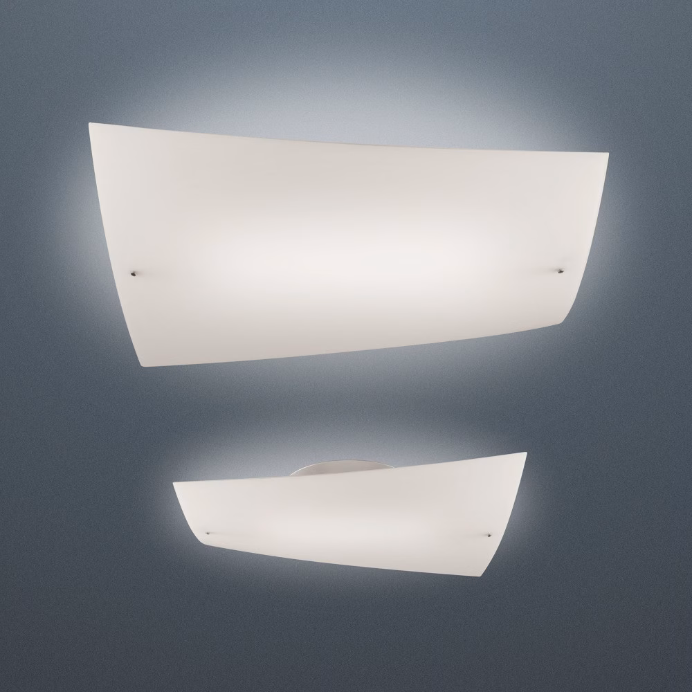 In the Folio ceiling lamp, the thousand-year tradition of blown glass is restyled in view of contemporary design culture. Folio is a visibly light and delicate body like a simple sheet of paper, with two only slightly folded corners.