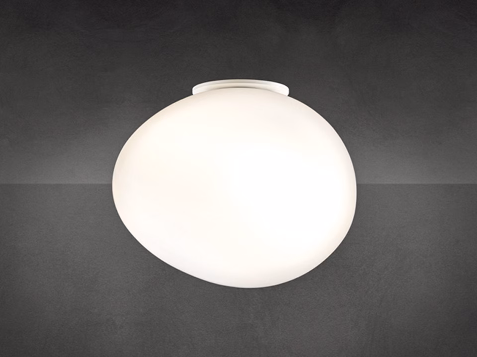 Made of blown glass, the Gregg ceiling lamp has a soft, friendly and dynamic shape, which recalls that of pebbles smoothed by water. Gregg diffuses a soft, warm glow into its surroundings