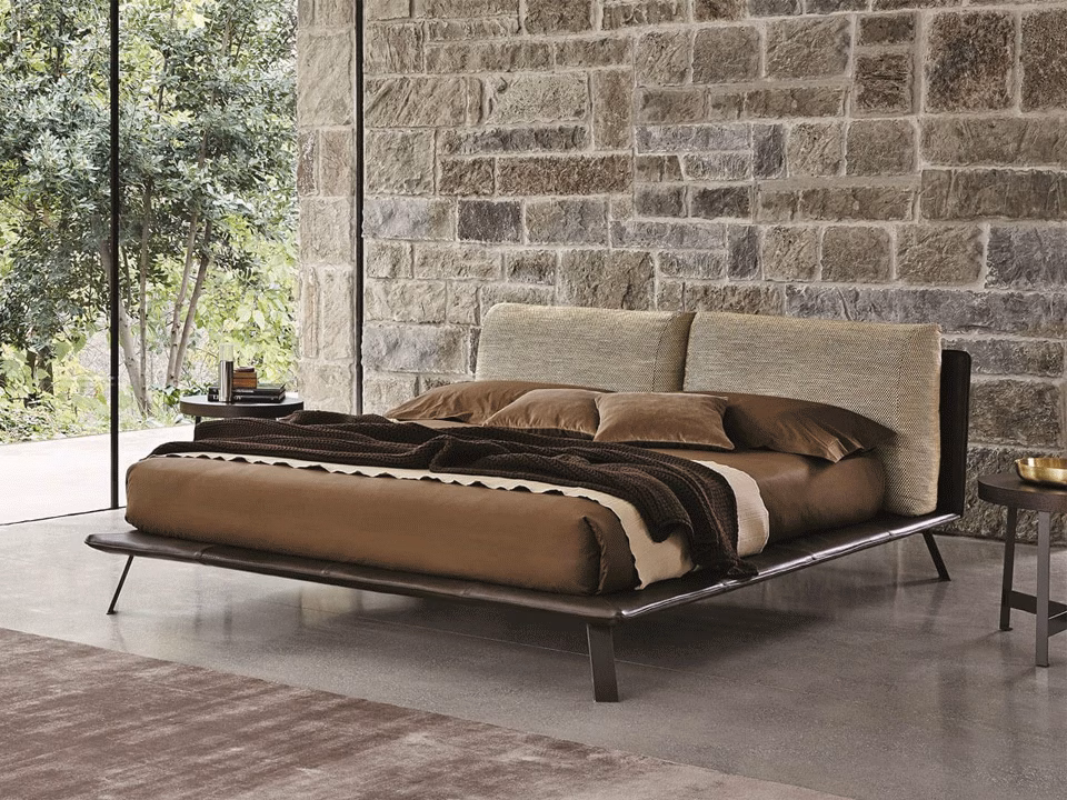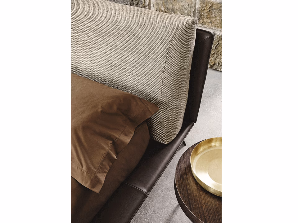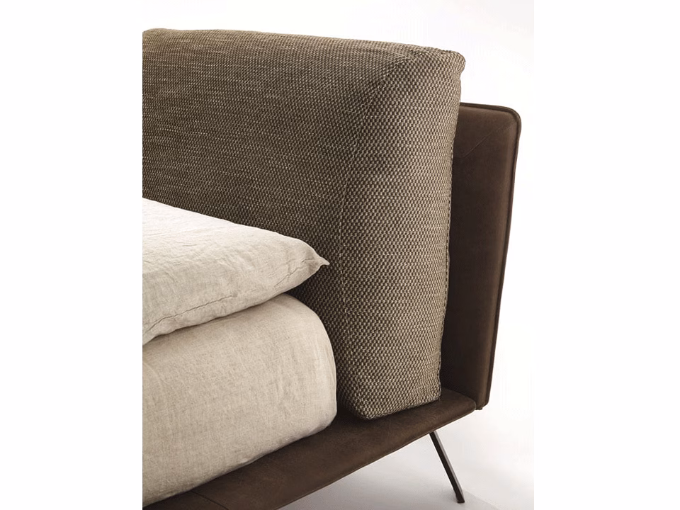 - Cover fabric upholstery fully removable. In the leather and artificial leather version the headboard panel’s cover is not removable, the bed frame cover is removable. Back cushions’ cover is always removable. Bed frame always includes the slat cover. The realization of the leather elements, unlike the ones in fabric, can require additional stitchings: this is due to the natural origin of leather. For two-colour finish, with headboard panel in fabric or artificial leather, headboard cushion in fabric or artificial leather and bed-frame upholstery in fabric or artificial leather