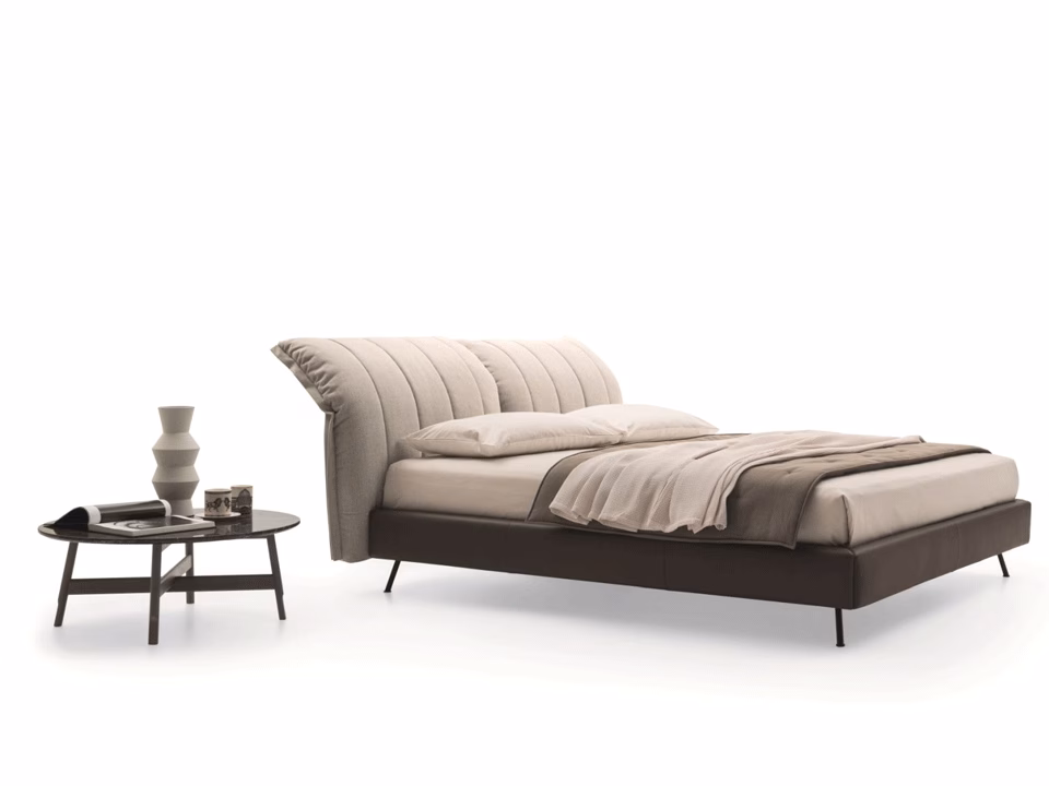 Featuring a minimalist line and a soft, adjustable, headboard – forwards to support your neck or reclining backwards for reading – On Line replicates the comfort offered by the homonymous sofa. The bed frame is available fabric upholstered or in the mix version.