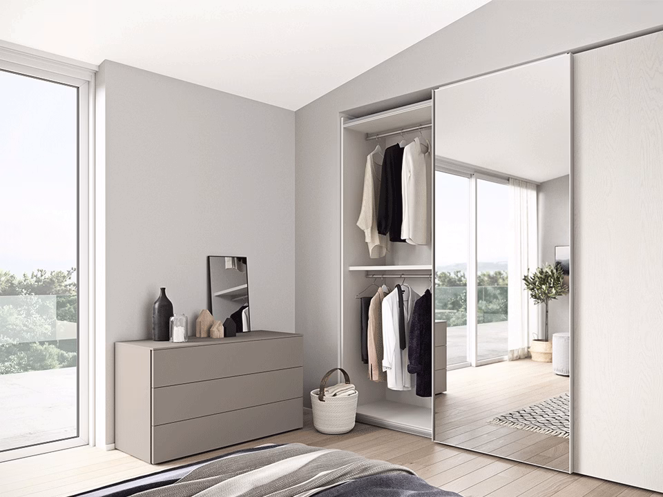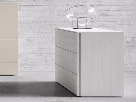 Clean, essential lines define the Atene collection, available in any finish from the catalogue with a side profile for opening drawers in the bianco or bronze finish. The collection includes chests of drawers, bedside table and tallboy.