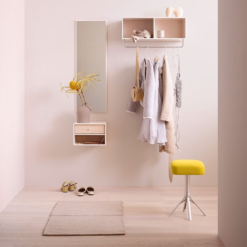 The shelf is available in Montana’s 40 lacquer colours. Colours like Mushroom, New White or Nordic will create a calming atmosphere perfect for the Scandinavian home. If you want a warmer look, go for colours like Turmeric or Cumin.