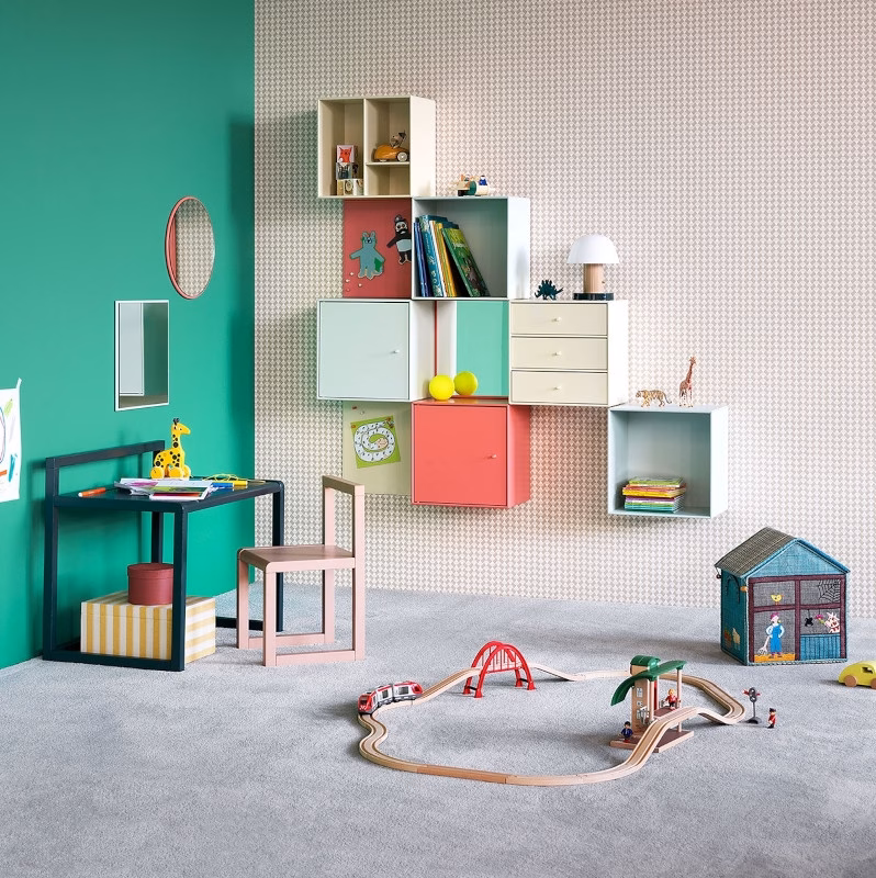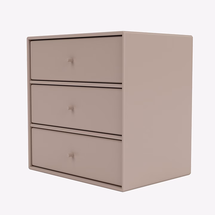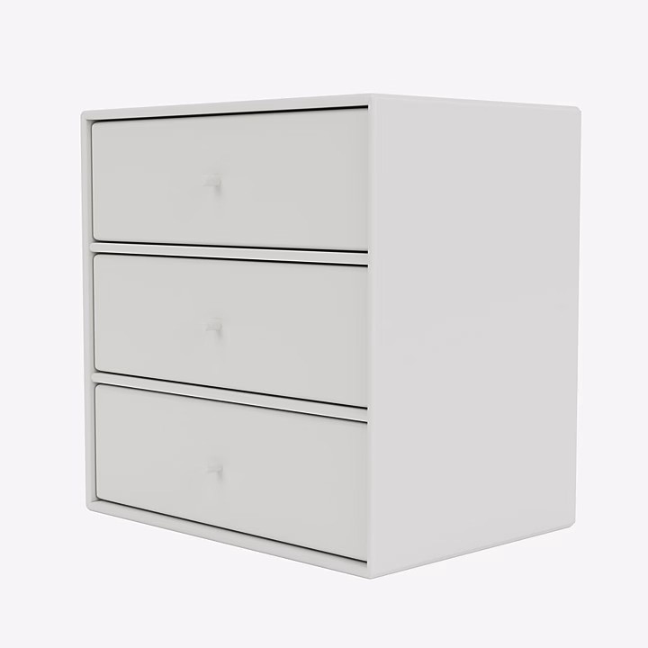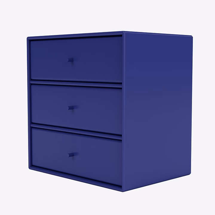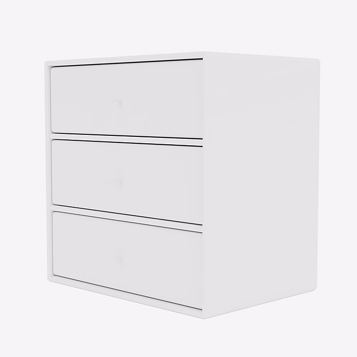 This Montana Mini module has three shelves and three tray drawers. The tray drawers are removeable as they only rest on the shelves of the module – hence the module is functional both with and without the trays. The trays drawers are white with a front lacquered in the same colour as the corpus and shelves of the module.