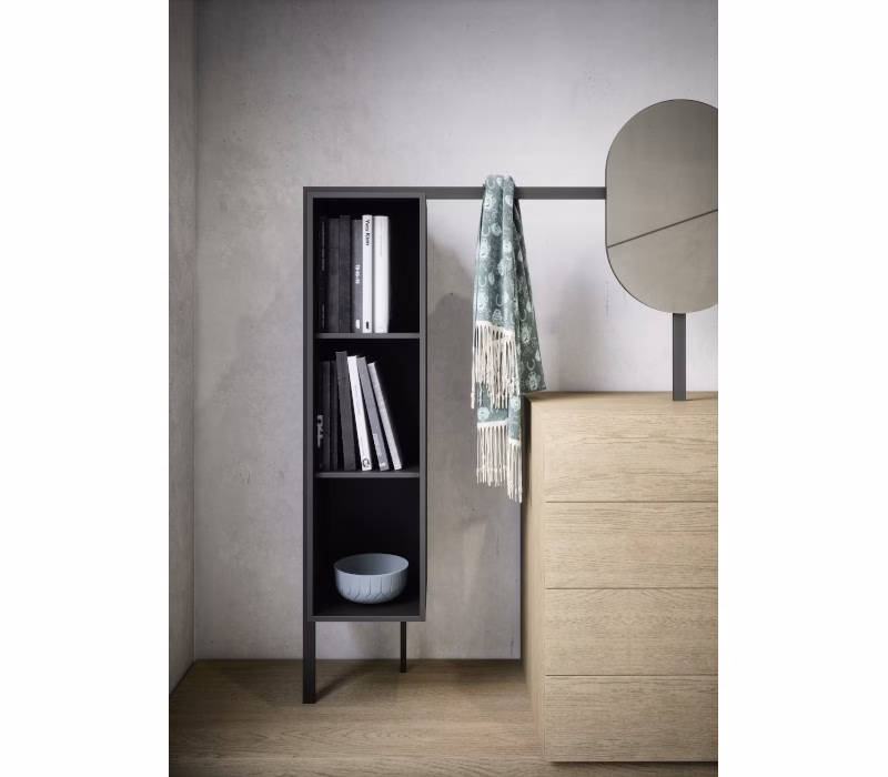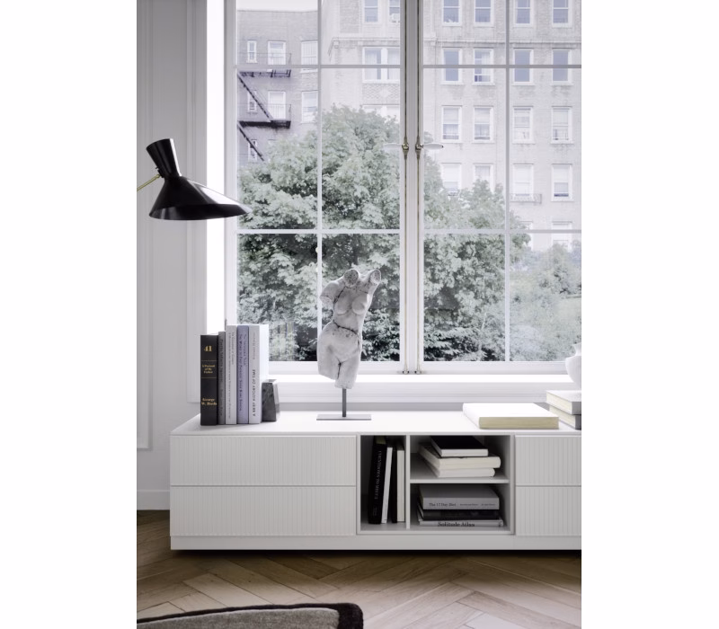 Easy System is a design that stands out for its pared-back look and impressive versatility. Drawer units and bedside tables become part of a larger system that can also include floor benches, clothes racks, mirrors, open shelving, freestanding arrangements, desks, Box 12 and Tetris storage units, creating endless furniture solutions. Each of the system components can be customized with an extensive range of finishes to choose from. Easy can also be ordered with undermounted wireless charging.