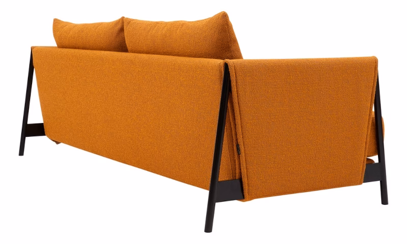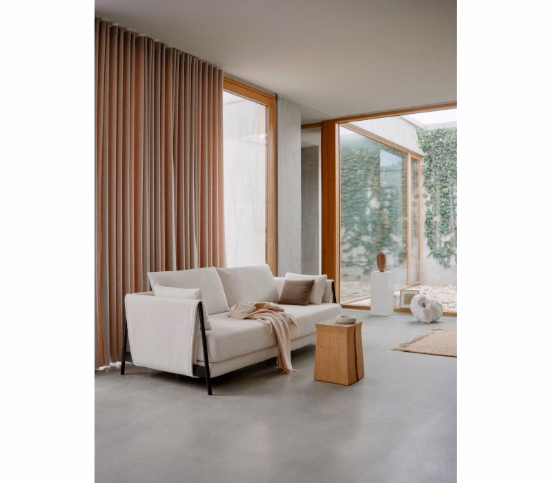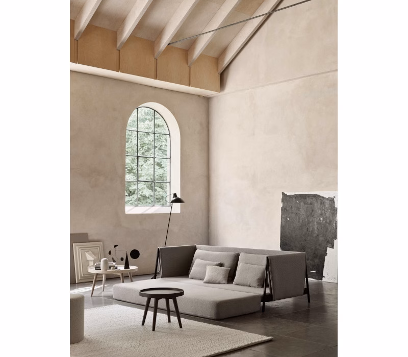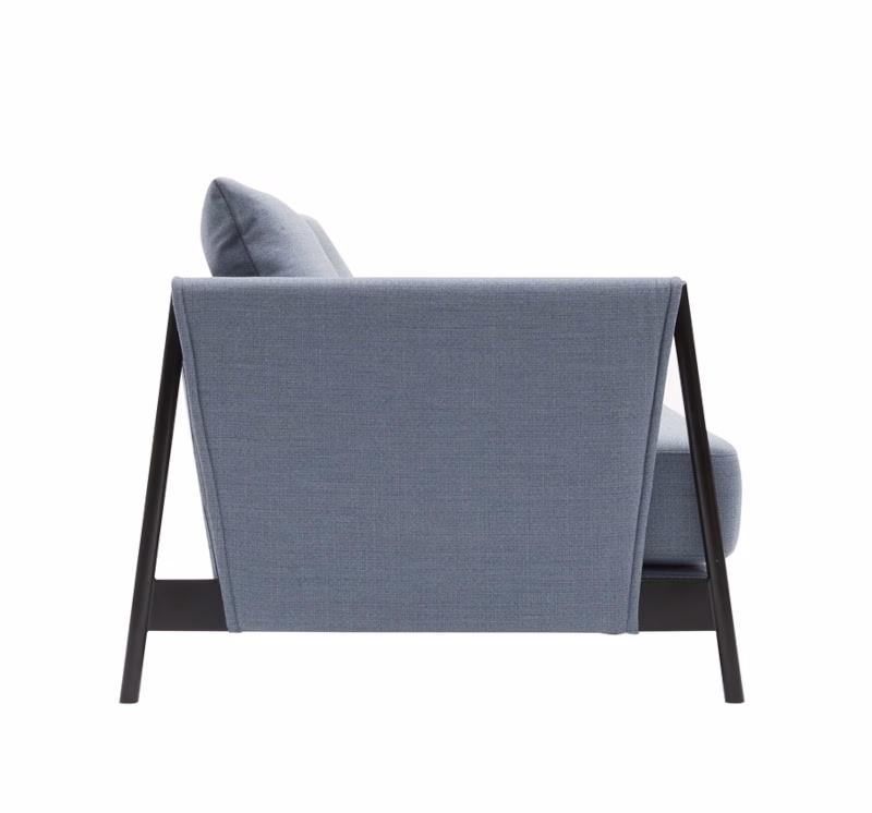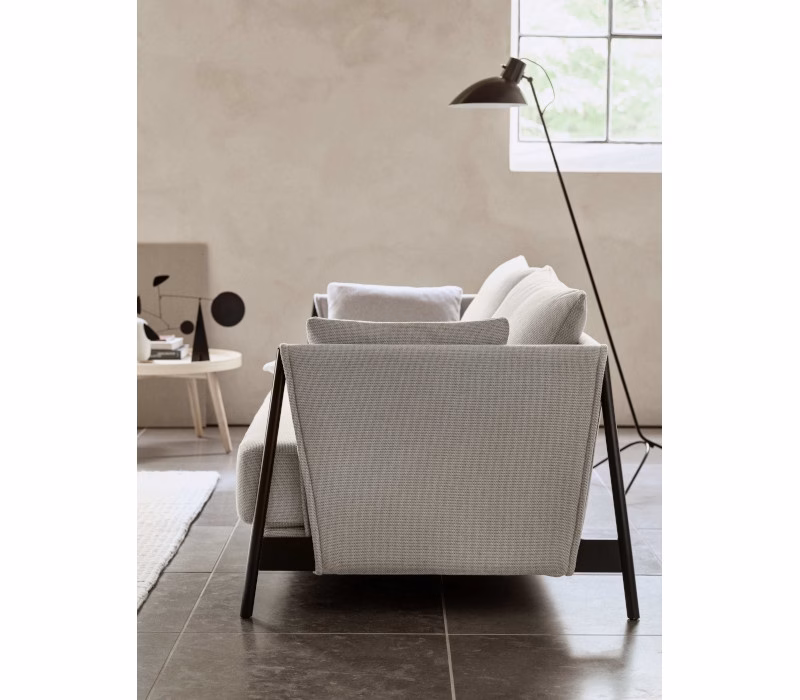 This is a fresh, uncomplicated sofa bed in a chic design, perfect for sitting, chilling and sleeping. The sofa radiates a casual elegance with the fabric-covered steel armrests and the cushions with pointed seams. The construction of the armrests creates a strong identity and uniqueness. The seat depth of the MADISON sofa invites you to lounge and chill. The pillows, which can be freely arranged, can be used as armrests, for lumbar support or as backrests – and there is plenty of space for your personal favourite pillow too. As an extra hidden feature, MADISON is easily converted into a comfortable single or double bed.
