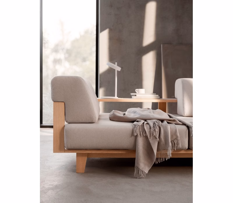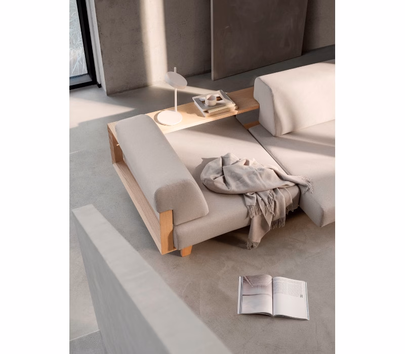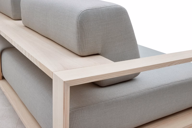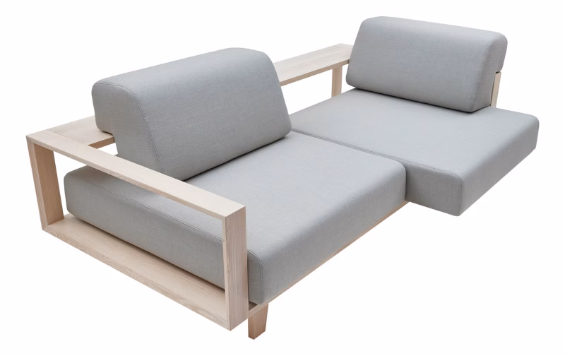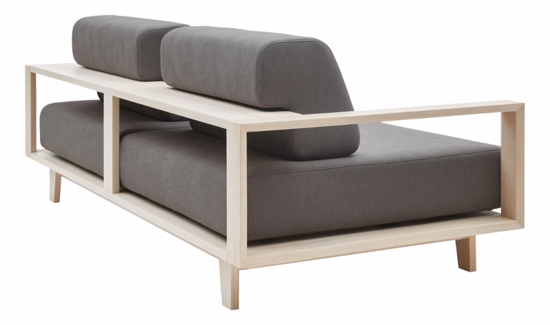 Get creative with the innovative sofa WOOD. The back cushions can be placed anywhere on the wooden frame, and the two-seat cushions can be moved to the front to make more space for lounging. On the back frame, there is room enough for a lamp, a laptop or a glass of wine, which makes WOOD perfect for sitting, relaxing, working, reading and napping.