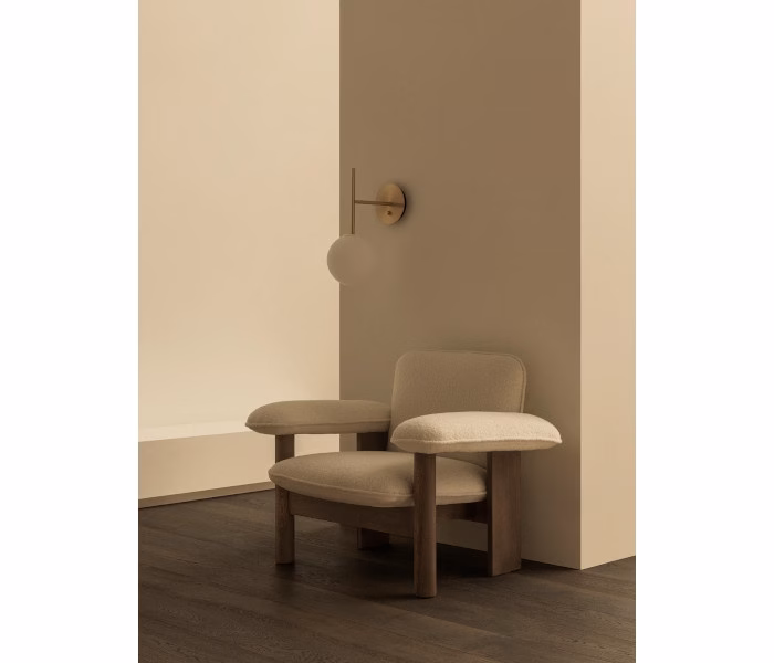 Tim Rundle’s TR series for Audo is based on the modern, nomadic lifestyle, moving between cities and countries in the pursuit of adventure. Simple in form yet sophisticated in expression, the TR Bulb Suspended Wall Lamp sees the itinerant TR Bulb in opal glass suspended from a brushed brass arm in a meeting of straight lines and round shapes. Emitting an even, glare-free glow, the dimmable LED bulb is controlled via a dial on the wall-mounted backplate. While fitted with a cord, the lamp can also be hardwired