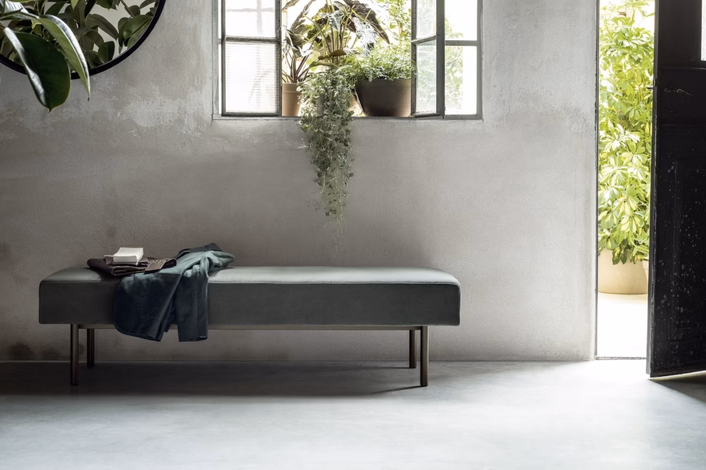 Church is a padded bench made for Novamobili that lends itself to a whole host of situations: from the entry hall to the walk-in wardrobe and, more generally speaking, as the perfect occasional piece in spaces made for unwinding.