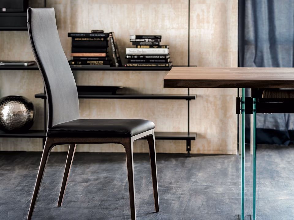 The Cattelan Italia Arcadia Chair without arms with frame in natural beech (F1), Canaletto walnut (FNC), wenghè (FW), matt white (OP7) or black (OP17) stained beech. Cover in fabric, synthetic nubuck, micro nubuck, soft leather or synthetic leather as per sample card. The cover is not removable.