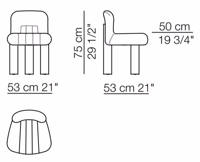 Cini Boeri designed Botolo in 1973, giving life to a new design style, where you could choose the height of the legs to have a dining chair in the high version or a style, at that time modern, “the living at a low level”, a way of living and sitting on the ground. In the legs there are wheels to move easily.