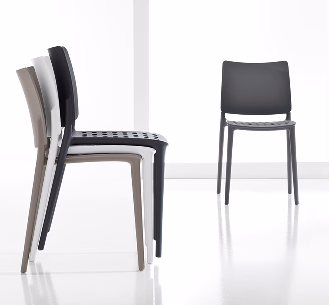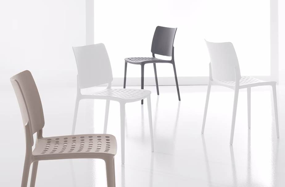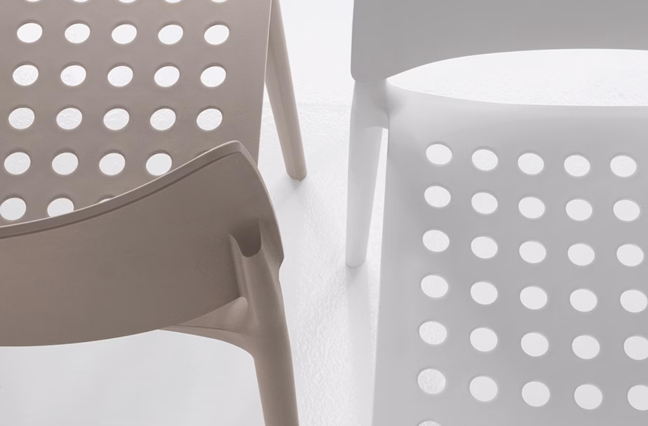 Blues is an innovative collection of chairs made in plastic material. The collection is distinguished by the perforated seat, comfortable and available in various colours, suitable for use in both indoor and outdoor environments. Resistant, lightweight and multifaceted, the Blues series was created for contemporary spaces and uses. Due to its design features as well as its solidity, it lends itself to all spaces, either private or public, also succeeding in fitting into the most unusual settings.