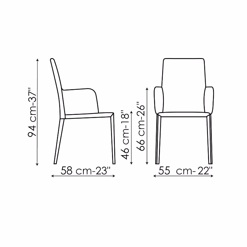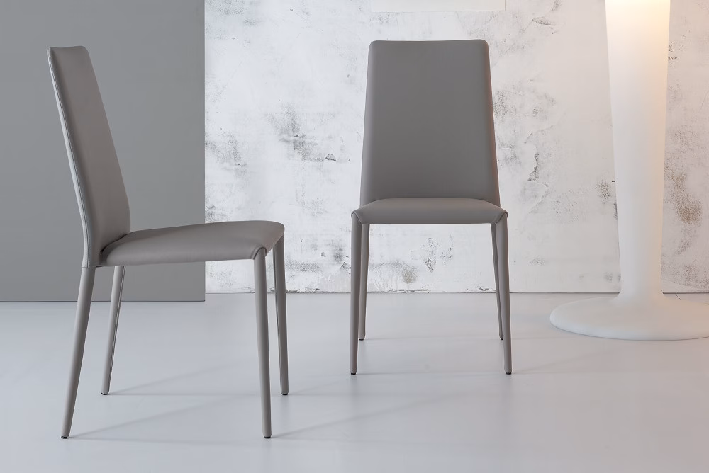 Elegant and refined, Eral is a padded chair with a high backrest that makes it especially comfortable and suitable for every setting and for any style. It is upholstered entirely in leather, eco-leather or emery-leather or in the version with painted metal legs, available in various colours, making it possible to create tone-on-tone combinations or interesting contrasts with the upholstered part. Comfortable and possessing great elegance, Eral has been designed with a discreet modernity, which allows it to dialogue with different tastes and worlds. In the fully upholstered variant, this chair gives an effect of high uniformity and stylistic compactness, always being pleasantly balanced: a valuable and refined approach to functionality.