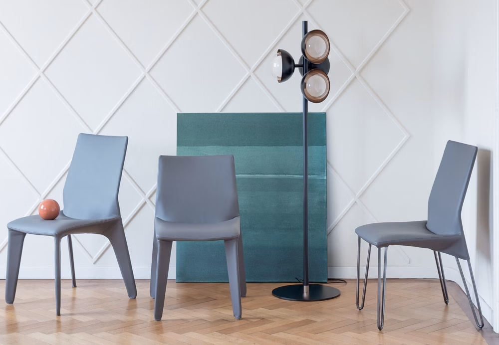 Ika is a family of chairs characterised by a simple silhouette and generous curves that transmit, already from the first glance, a profound sensation of comfort. Not only a visual comfort, but most of all a sensorial one: the abundant padding transforms the seat into a soft and welcoming embrace, to ensure maximum comfort. Along with Ika, the following variants are available: Miss Ika (with comfortable armrests), Ika up (with high backrest) and Miss Ika up (with high backrest and armrests). All the variants are available completely upholstered in fabric, leather or eco-leather, or with legs in metal in different colours.