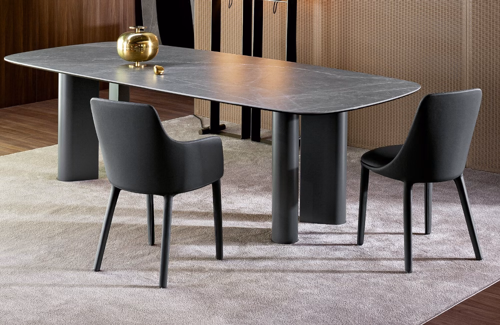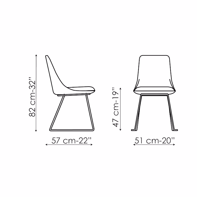 Itala is a chair with an elegant design, with padding accentuated in the seat and a backrest that tapers slightly at the top, making the image of the product lighter, giving it impetus. The upholstery is available in fabric, leather or eco-leather; for the lower part of the chair, it is completely upholstered or there are four legs in metal (Itala), or a sled-shaped base in metal (Itala si).Also a version with armrests is available (Miss Itala),The simplicity of the sign and the chair’s structural cleanliness are accompanied by a wide range of personalisation possibilities, allowing one to play with the materials, looking for different combinations and always ensuring a high aesthetic yield. This elegant dining chair perfectly integrates with classic or modern sp