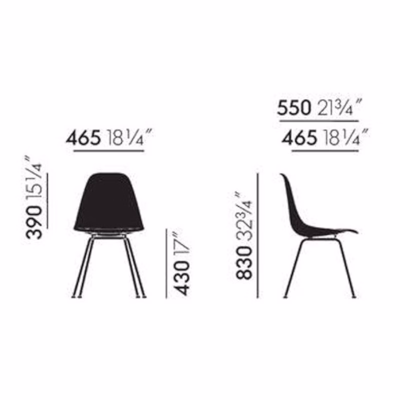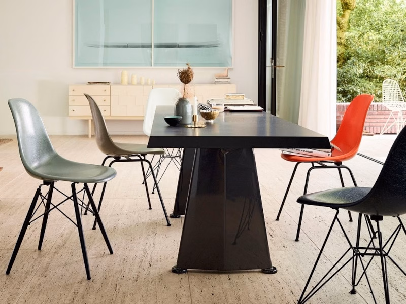 With its four-legged base in tubular steel, the DSX (Dining Height Side Chair X-Base) is the most understated version of Charles and Ray Eames’s classic plastic chair. Its comfort can be further enhanced by the optionally available seat cushion.