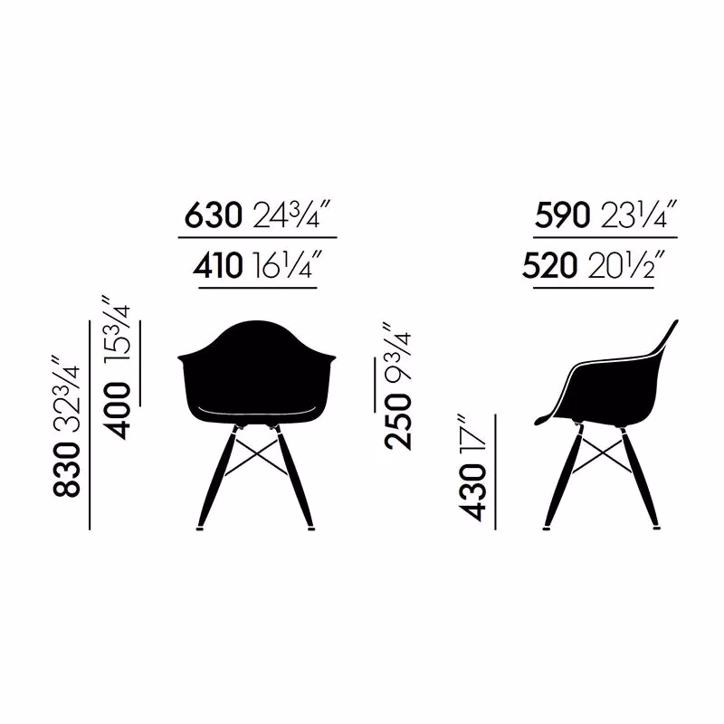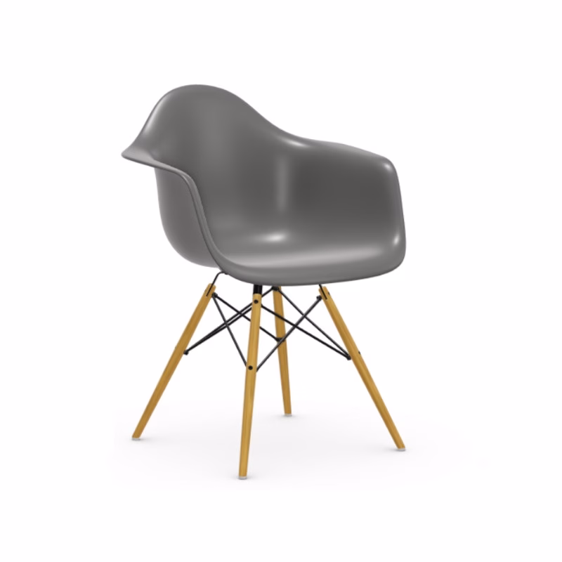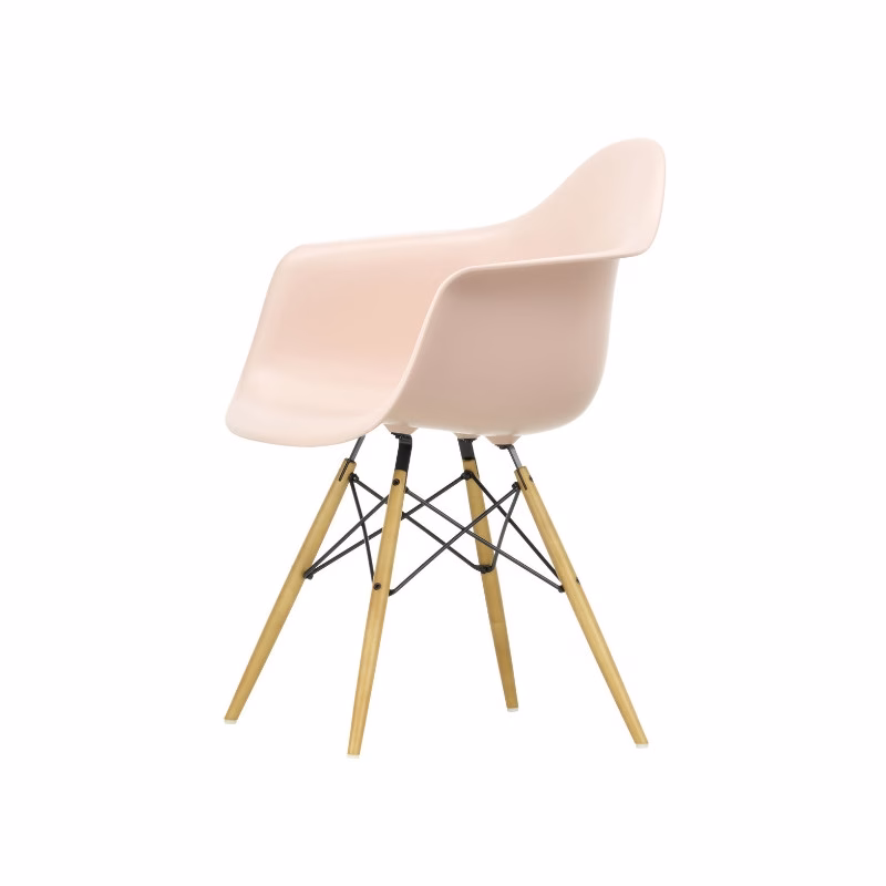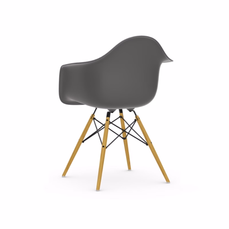 The DAW chair (Dining Height Armchair Rod Base) stands out as an inimitable classic design combining light, elegant forms with structural strength in the intricate steel wire construction of its ‘Eiffel Tower’ base. DAR = Dining Height Armchair R-Rod Wire Base.