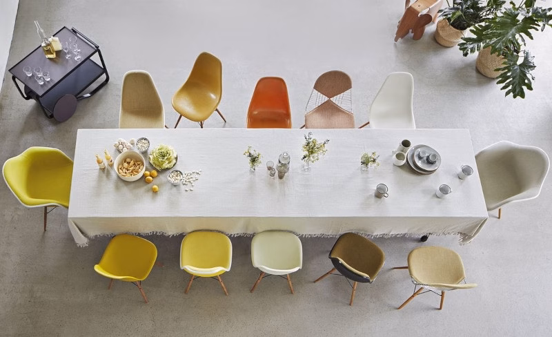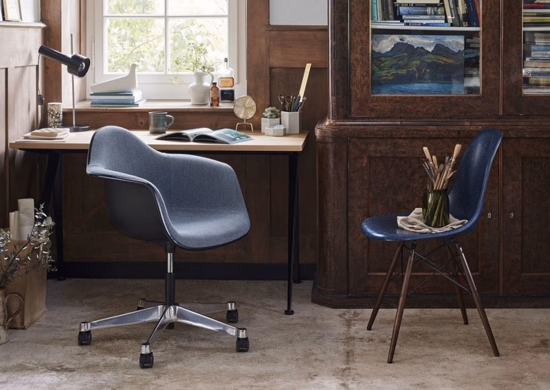 For the Dining Height Side Chair Wood Base (DSW), Charles and Ray Eames combined the organically shaped seat shell with a four-legged wooden base. The pairing of plastic and wood gives this classic design a certain warmth and casual appeal. This can be further enhanced by the optional seat cushion.
