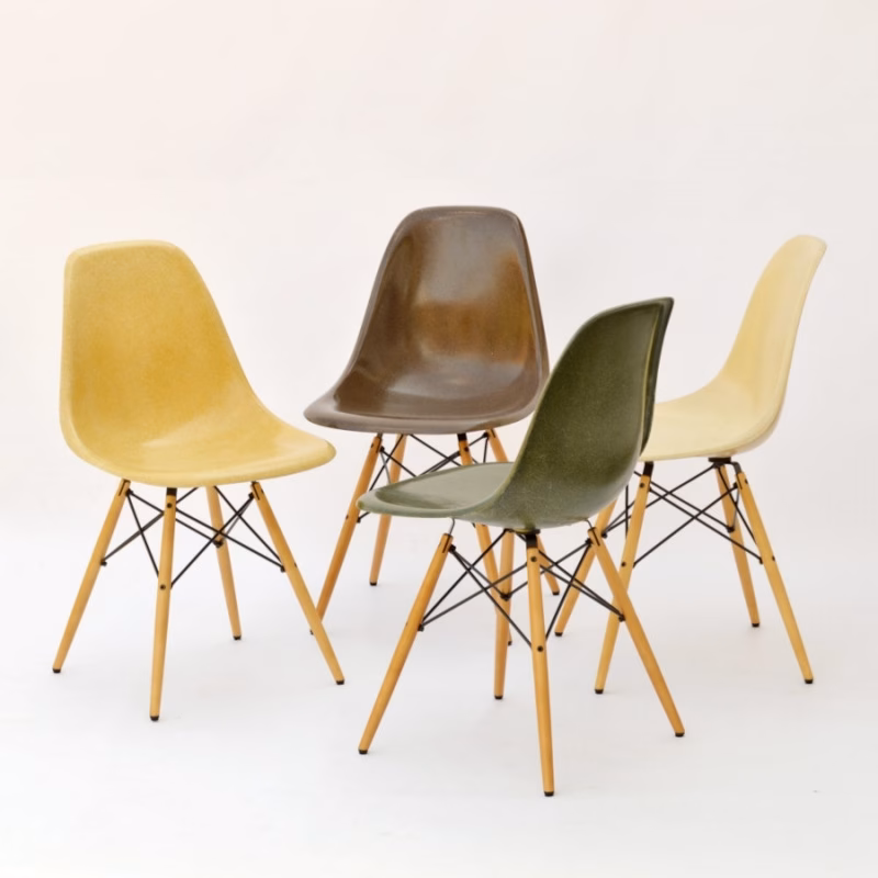 Eames Fiberglass Side Chair DSW wooden base & Upholstery