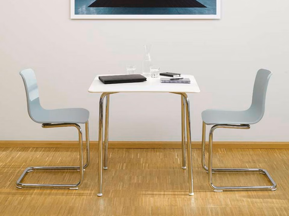 The HAL Tube chair is part of the HAL chair family by Jasper Morrison. It is designed with a classic, unassuming four-legged base and a comfortable plastic shell. The versions with powder-coated chair legs are ideal for outdoor use.