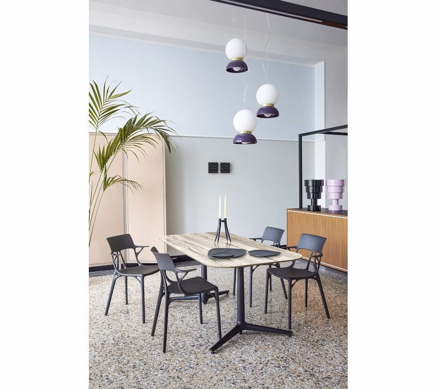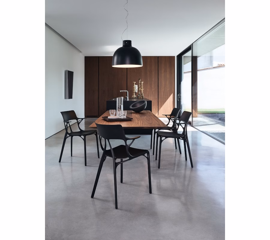 Kartell continues its ongoing commitment to sustainability with eco-friendly products which are part of the broader project expressed by the industrial manifesto Kartell loves the planet. A.I. is the chair created for the first time ever using recycled material, in which aesthetics and structural requirements remain unaltered, blending seamlessly with generative design.