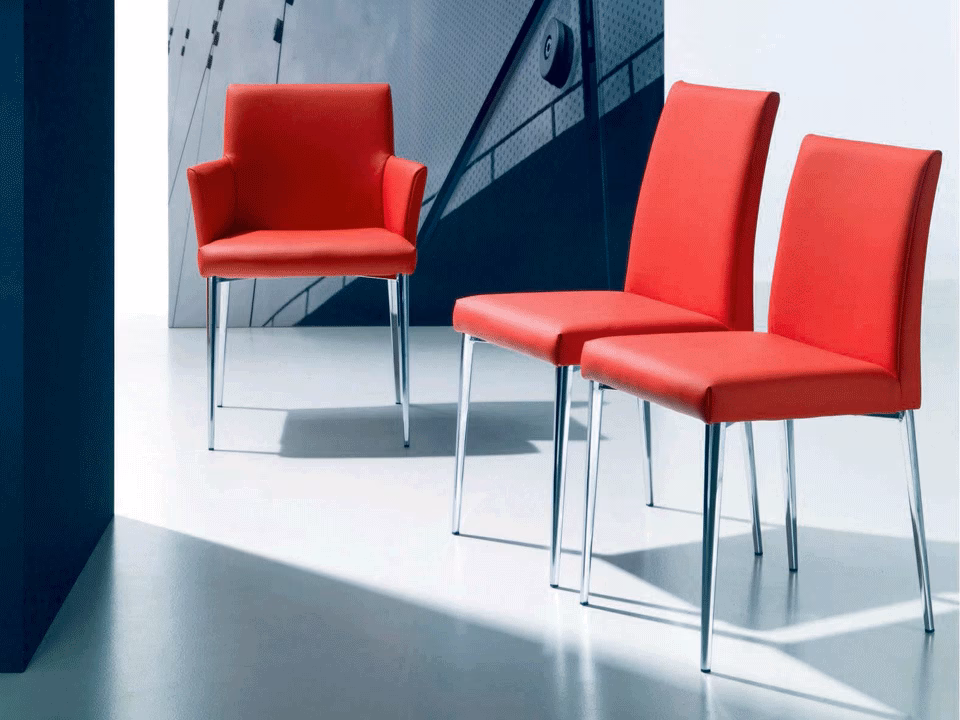 - Material: Chair with arms and lacquered or chrome Metal frame, seat and back upholstered.