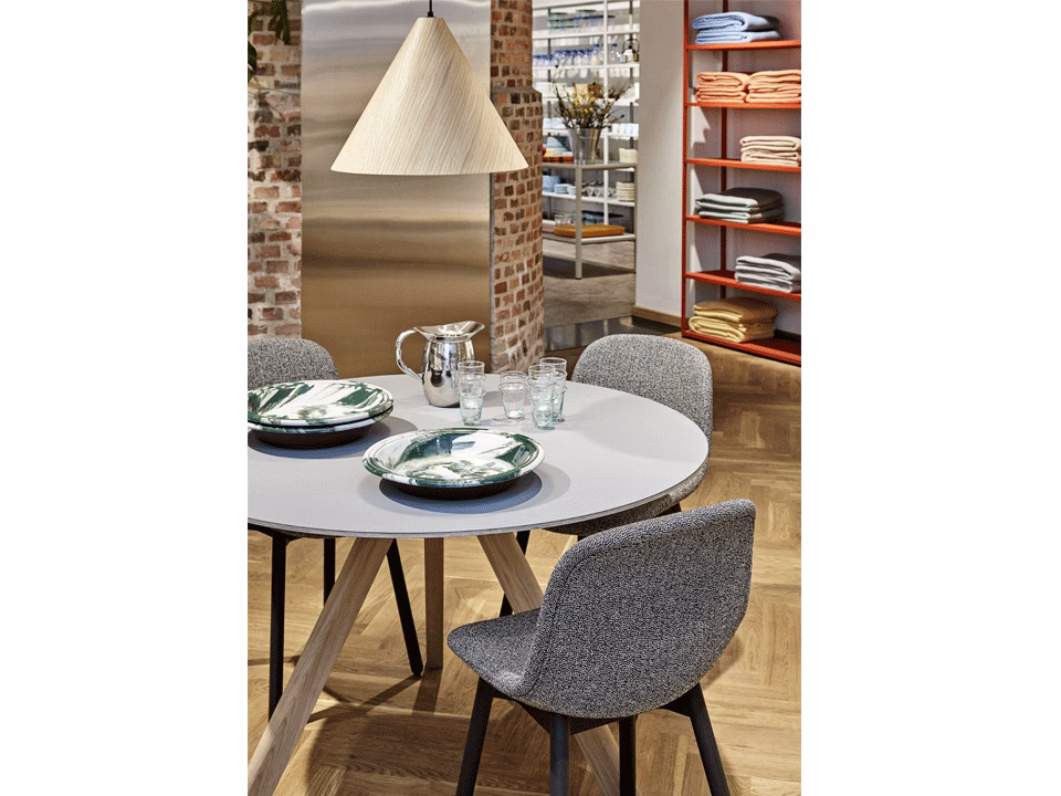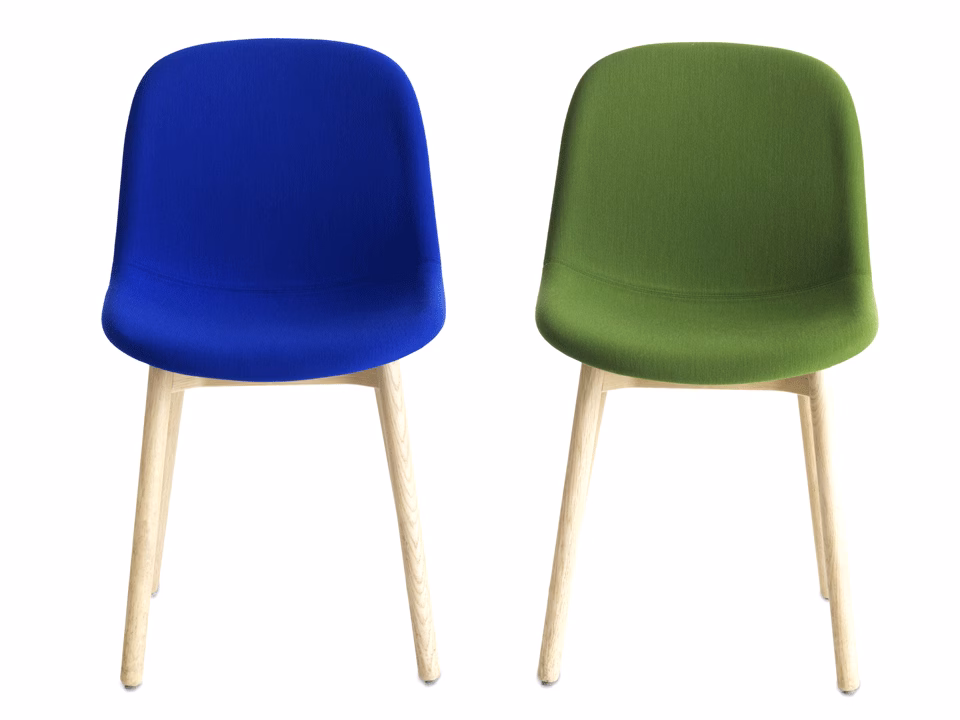 Neu’s ergonomically moulded shell combined with its round solid wooden legs results in a perfectly defined profile. The durable, finely-grained plastic adds textural interest, while the rim detail gives the design structure and character. In the upholstered version a delicate stitching line runs across the seat, while a piping detail accentuates the chairs raised rim. Its robust and comfortable construction and flexible design options makes it the perfect choice for offices or dining rooms.