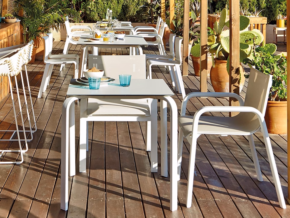 Stackability is the hallmark of the STACK collection, a simple and balanced line of outdoor furniture, inspired by sailing, with stylistic echoes of the 1960s and 1970s. Elegance, balance, lightness and comfort.