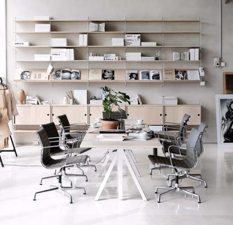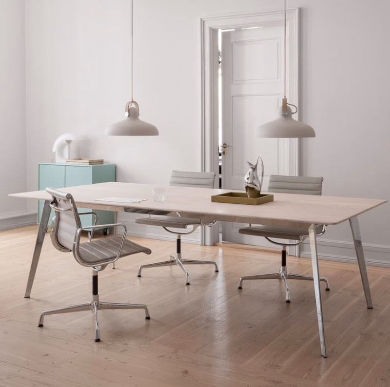 The Aluminium Chairs EA 101 Charles and Ray Eames are ideal for using in combination with tables: in comparison to the other models in the Aluminium Group, they are somewhat lighter, narrower and higher. Thanks to the wide selection of subdued or bright upholstery colours, it is easy to find the perfect chair for any dining room interior. The three models differ in the type of base – fixed or swivel – and whether they come with armrests.