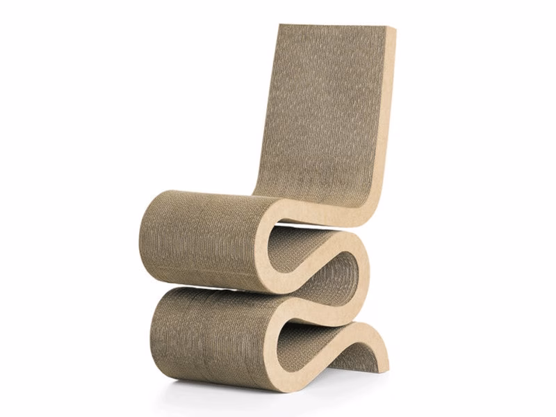 The Wiggle Side Chair is part of Frank Gehry’s 1972 furniture series ‘Easy Edges’, in which he succeeded in bringing a new aesthetic dimension to such an everyday material as cardboard. The sculptural chair is not only very comfortable, it is also strong and robust.