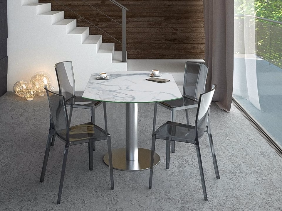 The Luna dining table has a unique mechanism hidden under the top plate which when opened up, transforms the table into a perfect circle of 135cm diameter. This elegant yet practical Akante invention is available in 5 finishes.