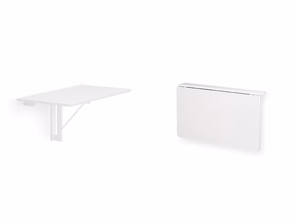 QUADRO model table, wall-mounting. Rectangular top folds when needed. QUADRO is a wooden table to be mounted on the wall at the desired height, using specially-made dowels. Versatile and functional, the wooden top can be used as a work top or dining surface, for a quick lunch. When closed, instead, it takes up as much space as a shelf. QUADRO drop-leaf table allows you to organize your space in the best way, and is perfect for a small kitchen or a small apartment.