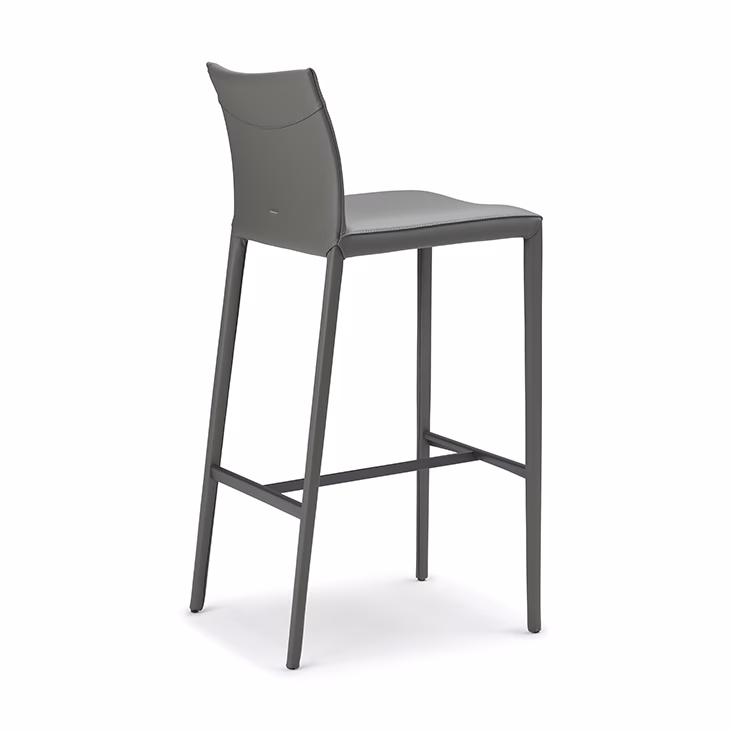 Stool with steel frame covered in synthetic leather, fabric, synthetic nubuck, micro nubuck or soft leather as per sample card. The cover is not removable.