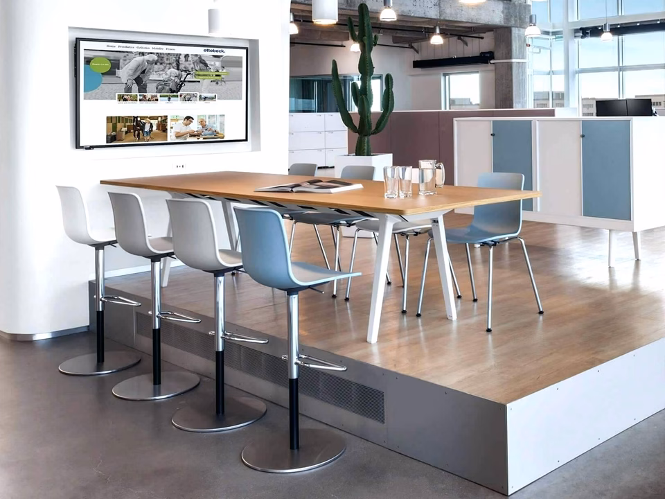 The HAL Barstool by Jasper Morrison pairs the unassuming seat shell of the large family of chairs with a height-adjustable swivel pedestal with comfortable footrest, on an elegant circular base plate. The HAL Barstool’s gas spring mechanism sinks comfortably under the user for an optimum seating experience.