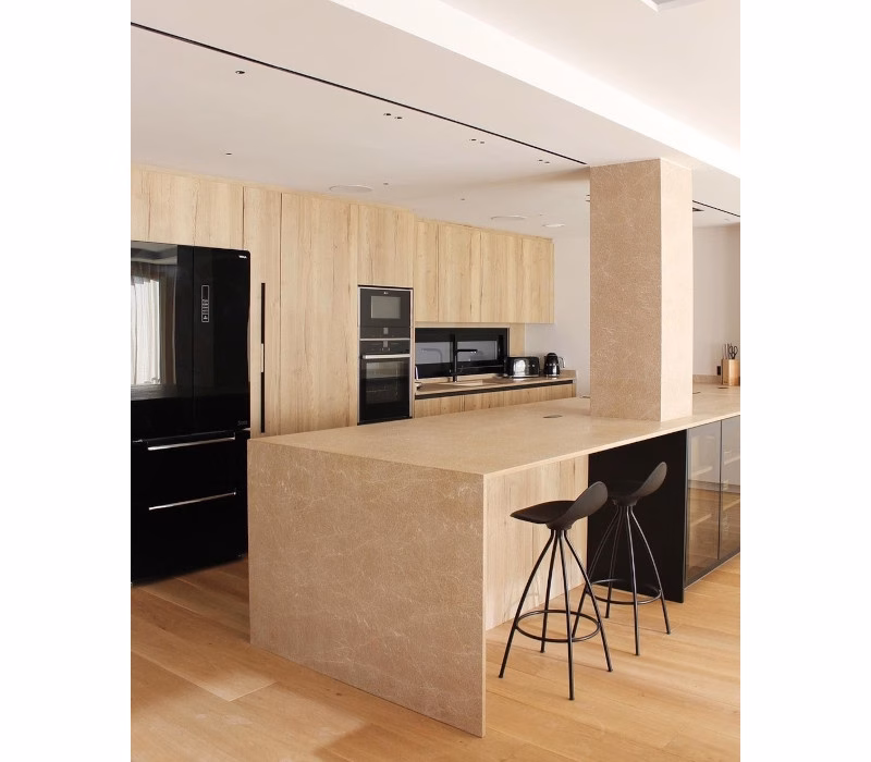 The stool’s four legged base, curves smoothly, offering a lightweight and stable structure.