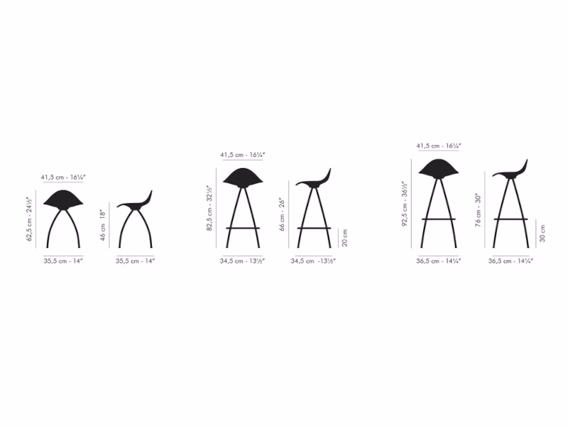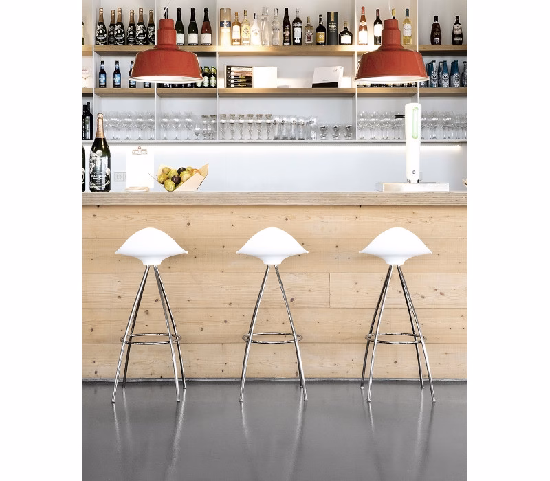 The stool skin and shell are moulded simultaneously, forming a final product of two different materials, densities and colours. An overall rich and elegant proposal. Onda comes with a chromed steel frame for indoor use and a stainless steel structure for outdoor use.