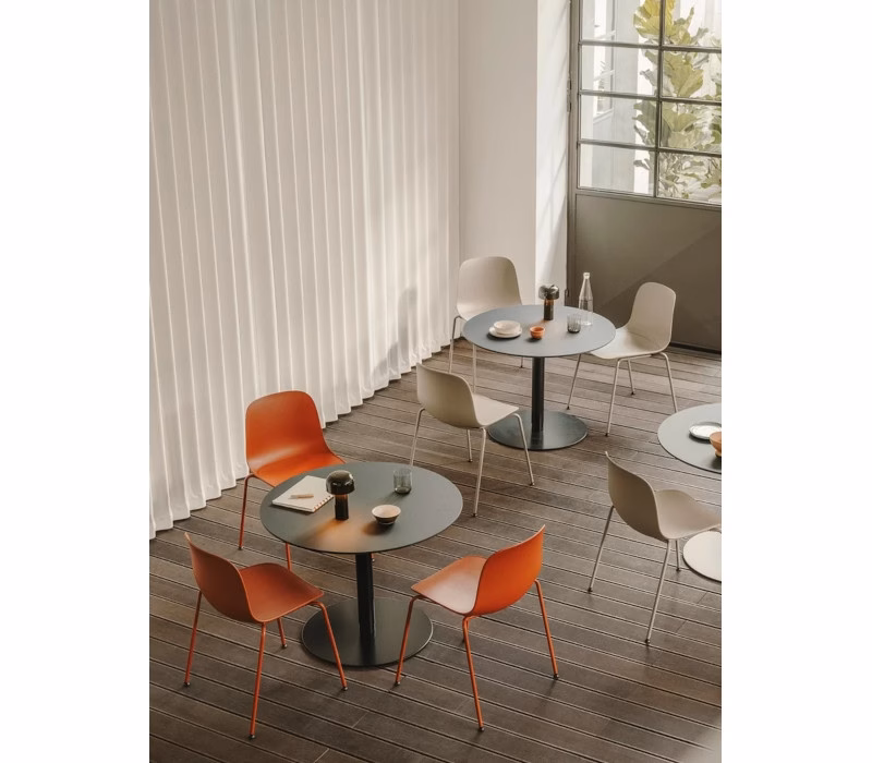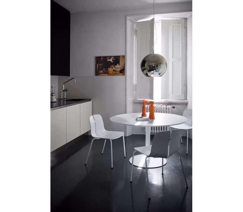 The key word is: minimalism. The simple yet harmonious RONDÒ table is a highly versatile furnishing item, which allows you to furnish home spaces, work environments, bars and restaurants etc. with a sophisticated touch.