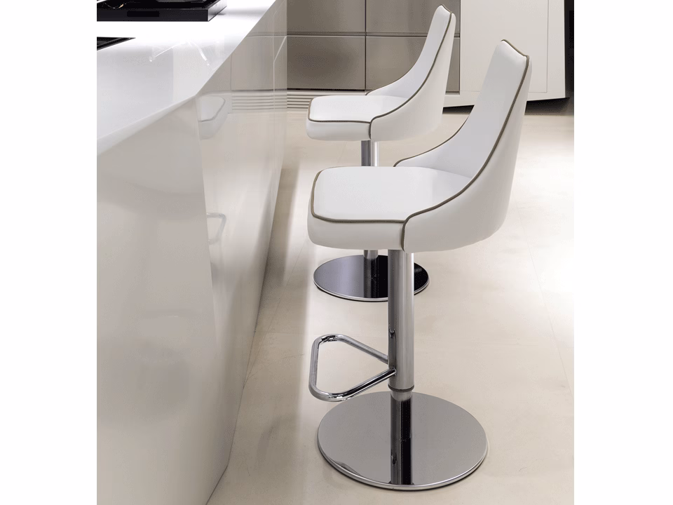 - Gas lift piston and height adjustable, seat and back upholstered and covered in Eco Leather, Premium eco leather, Bouquet fabric, Lulù, Nordic, premium wool, supreme velvet & Premium Nappa Leather. Piping can be matching colour or contrast colour.