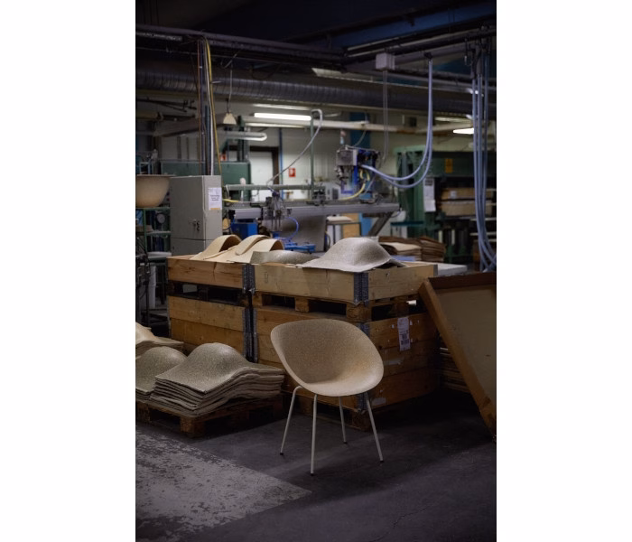 Not only do the materials provide a more responsible product, they also play a key role in the aesthetic of the design, highlighting the natural beauty and tactility of the materials. With circularity and responsibility at its core, the Mat collection is designed for disassembly and recycling, ensuring that the components of the Mat Chair can be recycled into new productions for a fully circular life cycle