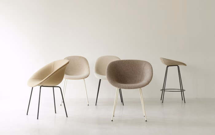 Not only do the materials provide a more responsible product, they also play a key role in the aesthetic of the design, highlighting the natural beauty and tactility of the materials. With circularity and responsibility at its core, the Mat collection is designed for disassembly and recycling, ensuring that the components of the Mat Chair can be recycled into new productions for a fully circular life cycle