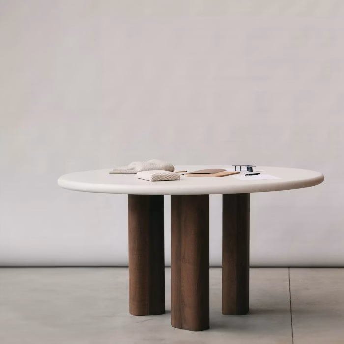 Inspired by how Greek columns or pillars support many architectural structures, the Pillar table collection was created. The legs provide a solid base in wood to brace the tabletop. Available to provide a warm contrast with a Mortex tabletop and ceramic or go for extra natural look combining it with a wooden top. The collection includes many different shapes, dining, coffee and side tables.