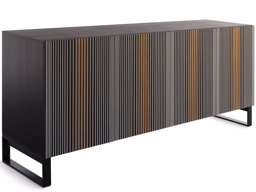 Freely inspired by the work of the Venezuelan artist, Carlos Cruz-Diez (1923-2019) and his Op Art style. You perceive this item not as a spectator but as a player who is actively involved with the object itself. It changes in colour depending on your viewpoint, giving the effect of a curtain which opens and closes.