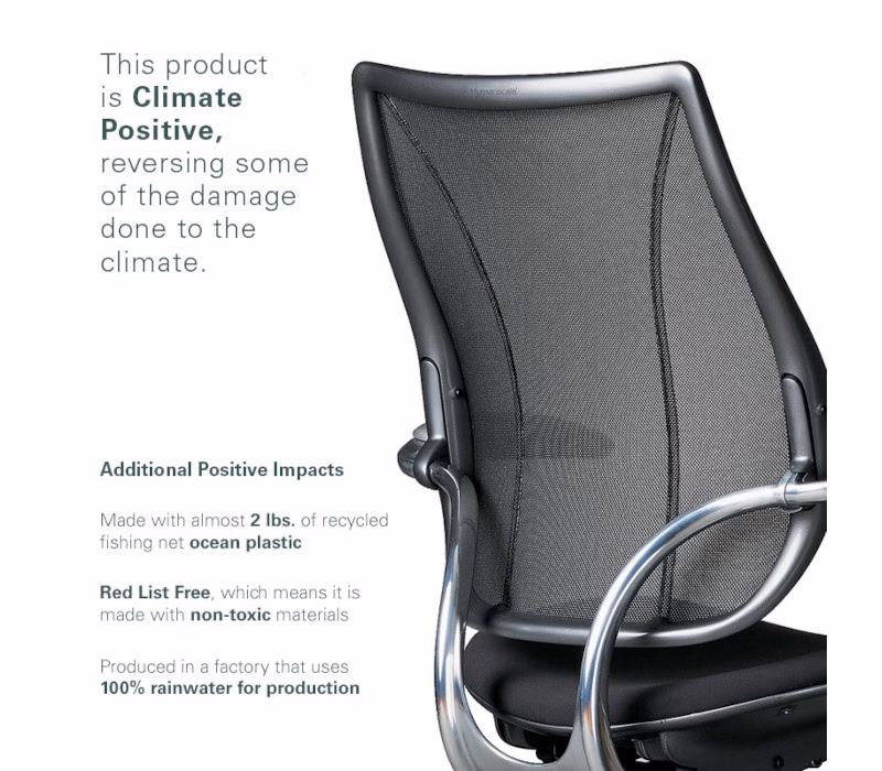 Liberty Ocean adheres to the Liberty chair’s cutting-edge design, while building on its Net Positive impact – incorporating nearly 0.9kg (2 lbs.) of recycled fishing net in each chair. Seamless functionality allows it to adjust instantly to each unique user in any position, no knobs or levers needed.