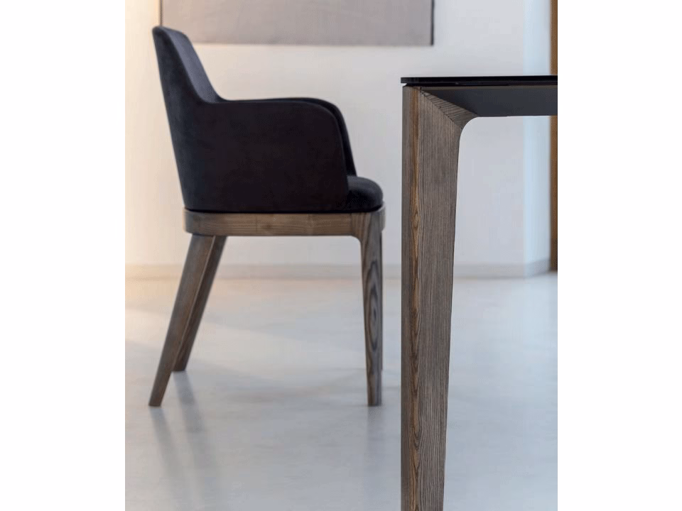 - Material: Chair with arms, solid Wood frame and shell upholstered and covered in Eco Leather, Mambo and Lulù fabric, Waterproof Nabuk, Waterproof printed Nabuk, Pure Virgin Wool, Velvet, Decò fabric and Premium Nappa Leather.