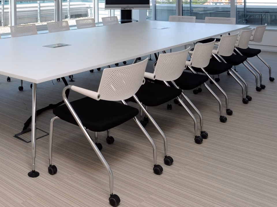Visaroll 2 – the stackable four-legged chair on castors designed by Antonia Citterio – is perfect as a task and visitor chair as well as for conference seating. The flexible backrest and soft seat upholstery provide outstanding comfort. The seat cushion is available with different fabric covers in a selection of colours.