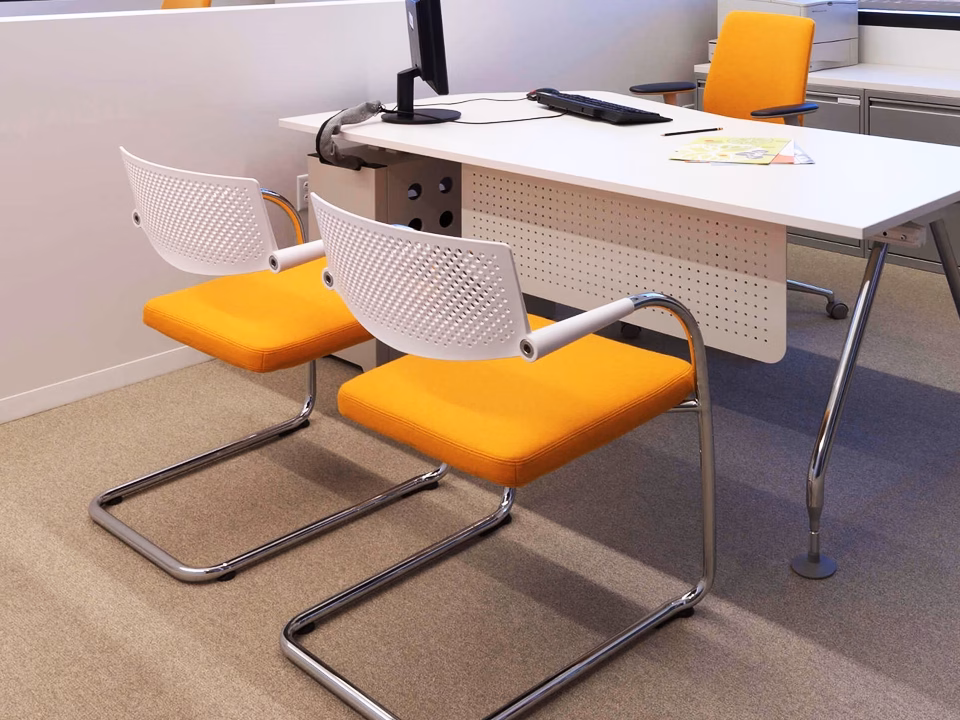 The Visavis 2 visitor and conference chair by Antonio Citterio is a convincing combination of aesthetic restraint, structural clarity and superb comfort. Designed for use in training venues and for mass seating, e.g. in auditoriums, it also comes in a stackable version with a row connector and writing tablet.