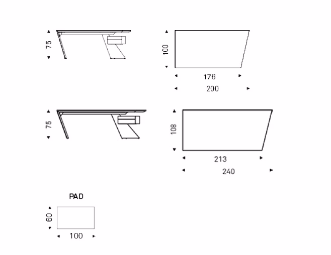 W 240 x D 108 x H 75 cm