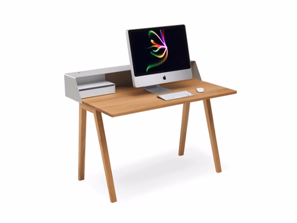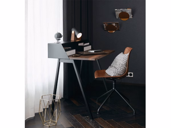 Cool, sophisticated and shaped to perfection: The davenports PS04 and PS05 help you declutter your work area and provide more space. The elegant design creates the impression of a true long-lived classic that you have valued for decades. The work top made of walnut or solid oak in combination with the colourful metal frame forms an interesting mix of materials and colours. Your new favourite work place will also serve you well as a convenient charging point for laptops, tablets and smartphones.