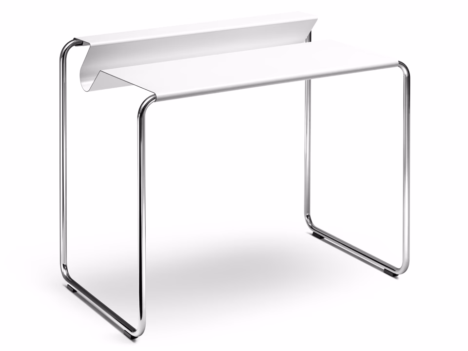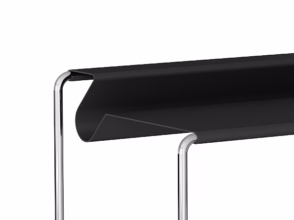 An unforgettable silhouette: The davenport PS 07 wins over with its exceptional shape and pure elegance. The appealing design is not simply a beauty to behold but also creates practical storage space on different levels, allowing you to have all your work utensils close at hand. The sturdy base is available in chrome or all RAL colors.